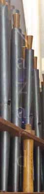 So how does an organ work?In order for it to work, an organ requires wind~ and lots of it! Nowadays, the wind in the bellows is supplied by electric blowers but in days of old, bellows had to be pumped by hand. The wind from the bellows is controlled by the action, that determines which pipes are allowed to speak, and which pipes are to remain silent. Since it is the length of a pipe that determines the pitch of the sound it makes, there must be at least one pipe for every note on the keyboard. To get the different colours of sound and varying degrees of loudness, there needs to be a lot of pipes.There are many, many different types of organ pipe and each type has its own timbre and name. For example Stopped Diapason, Lieblich Flute, Dulciana and Principal. Such a vast number of varying designs has come about through experimentation and a desire to emulate other musical instruments like the Trumpet or Oboe, Flute or Violin. The result is that the organ is both the loudest and the quietest of all instruments. However, all organ pipes belong to one of two families~ the Flue pipes and the Reed pipes. An example of the sound produced by a reed pipe is the Trumpet. An example of the sound produced by a flue pipe is the Flute. There are many other variables that control the sound other than the design of pipe. For example the wind pressure; the materials used in construction and even the fabric of the building in which the organ is installed. |